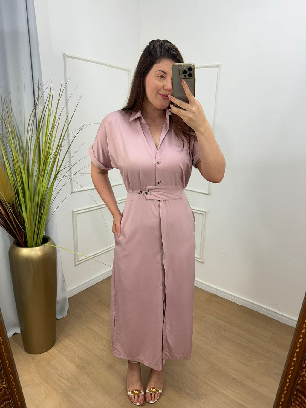 Vestido todo em botões, possui bolso, no viscolinho gramatura 120 qualidade impecável ele tem regulagem na cintura você pode coloca no botão 1 ou 2.