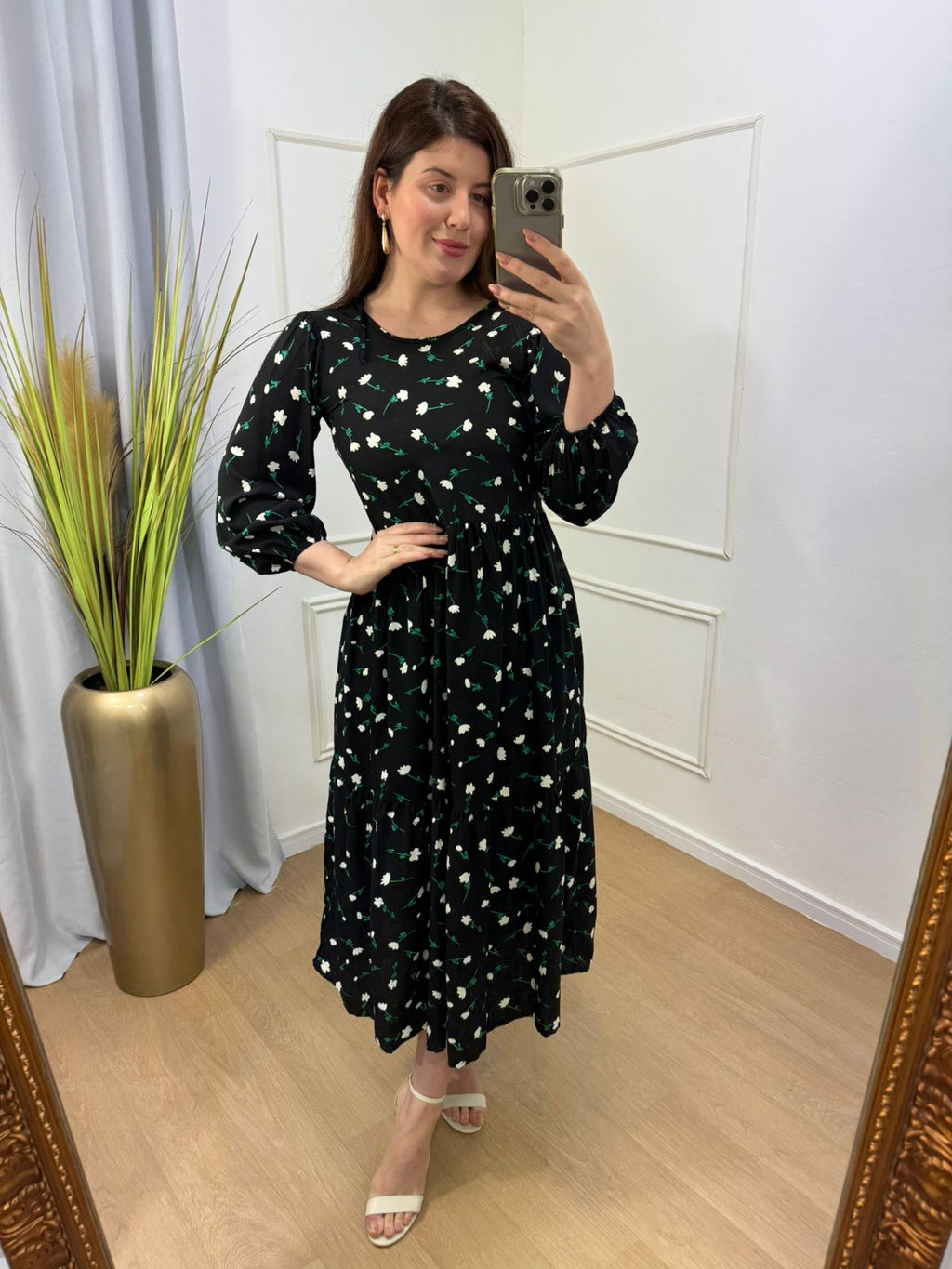 Descrição: vestido no viscolinho com forro na parte da saia modelagem ampla, pode ser usado com salto, tênis ele fica lindo.